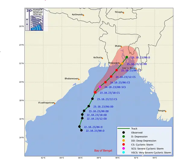 The Cyclonic storm “Midhili” is likely to move North-Southeastwards and may cross Mongla-Payra coast near Khepupara by this evening. The periphery of the cyclone may start crossing the coast by